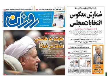 صفحه اول روزنامههای چهارشنبه 26 فروردین 94