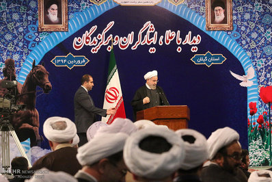 حسن روحانی رئیس جمهور در سفر به استان گیلان بعدازظهر چهارشنبه با علما ، ایثارگران و برگزیدگان استان و همچنین در جلسه توسعه و سرمایه گذاران حضور یافت و به ایراد سخنرانی پرداخت.