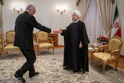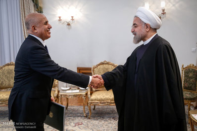 مراسم تقدیم استوارنامه گئوگیوآینانتیس سفیر جدید یونان،بابکاربا سفیر جدید سنگال،راسمی چتیها سفیر جدید تایلند و عبدالمنعم احریز سفیر جدید الجزایر صبح امروز دوشنبه باحضور حسن روحانی رئیس جمهور برگزار شد.