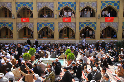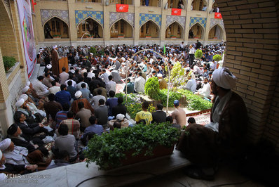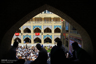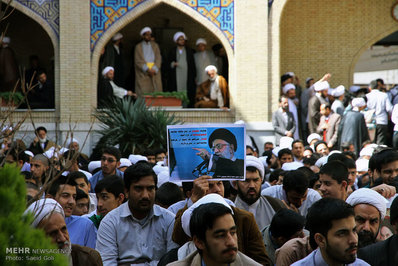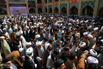 علما،اساتید،فضلا و طلاب حوزه علمیه مشهد در محکومیت کشتار وحشیانه مردم بی گناه یمن توسط رژیم آل سعود صبح امروز دوشنبه در مقابل مدرسه علمیه عالی نواب تجمع کردند.
