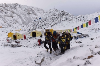روز دوشنبه، دوازده راهنمای کوهنورد (شرپا) نجات یافته از ریزش بهمن در اورست، از فرودگاه به محل دیدار با خانواده هایشان منتقل شدند.
