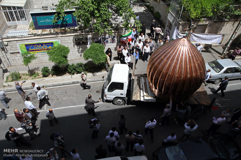 بدرقه اولین قبه گلدسته های حرم مطهر امامین جوادین (ع) به کاظمین صبح امروز چهارشنبه برگزار شد.