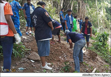 پلیس تایلند میگوید احتمالا قاچاقچیان، اجساد و این دو بیمار را در این محل رها کرده و بازماندگان این گروه را که در این کمپ نگهداری میشدند، به خاک مالزی منتقل کردهاند.