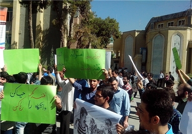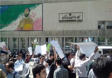 صراط: دانشجویان دانشگاه امیرکبیر مقابل محل سخنرانی هاشمی رفسنجانی تجمع کردند.