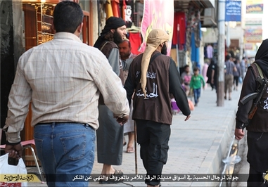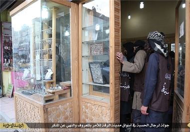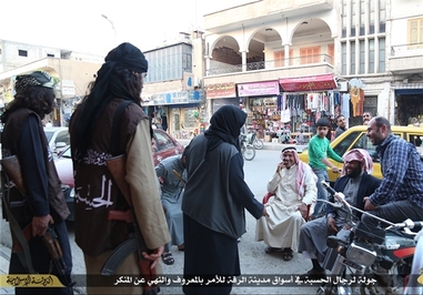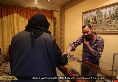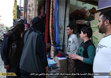 اعضای گروهک تروریستی داعش تحت عنوان «مسئولان دیوان محاسبات در بازارهای شهر رقه سوریه برای امر به معروف و نهی از منکر»، به بازرسی بازار و بازاریان پرداختند. اعضای گروهک تروریستی داعش با گشت در بازارهای شهر رقه، دستوراتی را مبنی بر شیوه انجام معاملات و خرید و فروش اجناس به اهالی بازار ابلاغ کردند و از آنان خواستند تا این اوامر را اجرا کنند.
