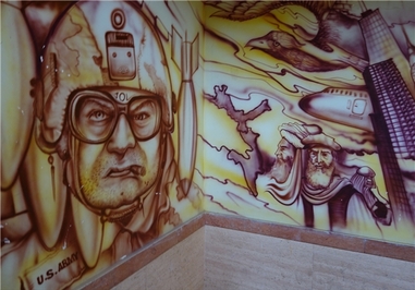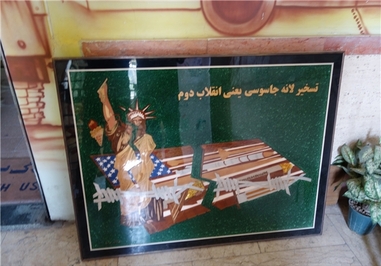 خبرنگار آمریکایی در ادامه این گزارش از دیدار خود از سفارتخانه سابق آمریکا در تهران نوشت: در تالار ورودی تمثالی از ابرهای قارچی شکل ناشی از انفجار هستهای که در کنارش بمبهای آمریکا و اسرائیل قرار دارند و همچنین بخش کوچکی از توان هستهای ایران نشان داده شده است.