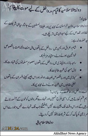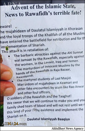 در محل جنایت مرگبار امروز کراچی که ۴۳ شیعه اسماعیلی به شهادت رسیدند یک سری برگههایی به زبان اردو و انگلیسی یافت شده که متعلق به گروه تروریستی داعش است.