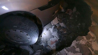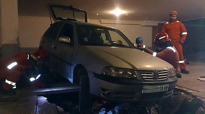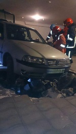 شهروند مشهدی حین پارک خودرو در پارکینگ منزل مسکونی به یکباره زمین دهان باز کرد و خودرو در درون حفره فرو رفت.