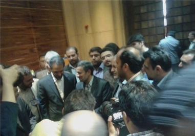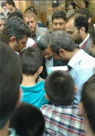 استقبال از احمدینژاد آنقدر پرشور بود که خروج وی از سالن حدود 20 دقیقه طول کشید چرا که بسیاری از مردم دور وی جمع شده بودند و خواستههای خود را مطرح میکردند.