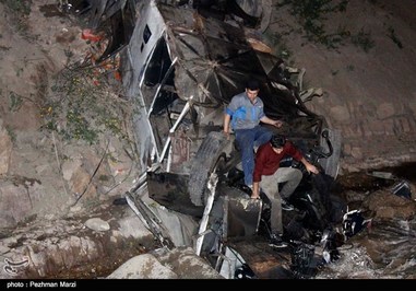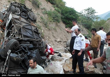 عصر روز گذشته اتوبوس گردشگران عراقی در مسیر تهران به رامسر در محور پیچ کمر زرد در اثر برخورد با دیواره کوه به دره سقوط کرد . در این حادثه ۲۴نفر کشته و ۲۰ نفر مصدوم شدند .عکس ها با تلفن همراه ثبت شده اند .