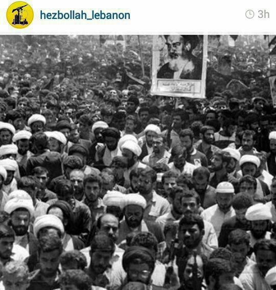 اینستاگرام حزب الله منتشر کرد، سید حسن نصرالله در مراسم تشییع امام در پایین تصویر مشاهده می شود.