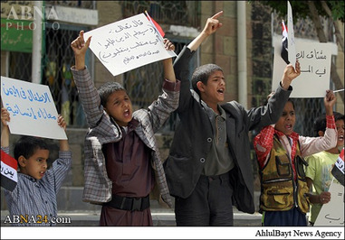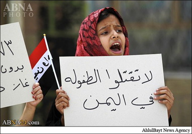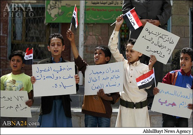 دهها کودک یمنی با برگزاری تظاهراتی اعتراضی در صنعاء به حملات وحشیانه رژیم سعودی که تاکنون هزاران کودک بی‌دفاع یمنی را به خاک و خون کشیده است اعتراض کردند. یمنی‌ها معتقدند آل سعود به جای «طوفان قاطعیت» که نام تهاجم این رژیم در آغاز حمله به یمن بود «طوفان کودک کشی» به راه انداخته است و کودکان یمنی بخش زیادی از قربانیان حمله وحشیانه سعودی‌ها به یمن را تشکیل می‌دهند.