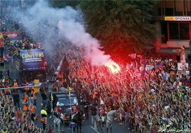 صراط: شادیهای خیابانی هواداران و بازیکنان بارسلونا بدون حاشیه نبود و برای رسانههای اسپانیایی به شدت خبرساز و جذاب بود.