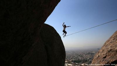 صراط: به هنر راه رفتن و حفظ تعادل و تمرکز روی تسمهای که بین دو نقطه کشیده شده، "اسلکلاین" میگویند. دو نقطهای که تسمه را بین آنها بسته و محکم میکنند، میتواند هر چیز و هر جایی باشد، مثلا دو درخت، دو صخره، دو دره یا حتی دو آسمانخراش.