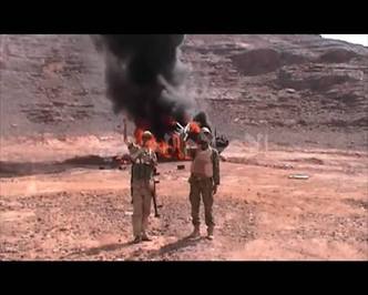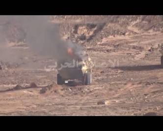 نیروهای یمنی پس از وارد کردن شکستی سنگین به نظامیان سعودی، چندین خودروی آنان را به آتش کشیدند.
