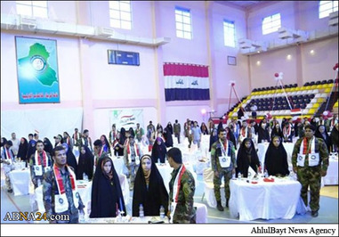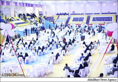 مراسم ازدواج دسته جمعی ۱۵۰ تن از رزمندگان بسیج مردمی عراق در شهر کربلا برگزار شد.