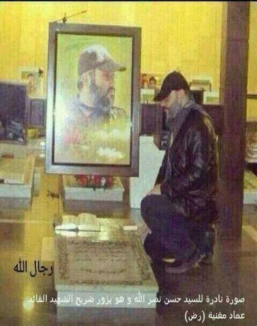 سید حسن نصرالله دبیرکل حزب الله لبنان بر سر مزار یار دیرینه اش شهید عماد مغنیه.