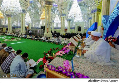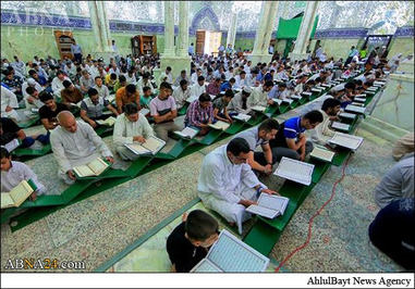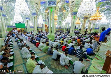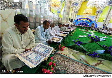 جلسه سالیانه ترتیل خوانى قرآن کریم که طى ایام ماه مبارک رمضان در رواق حضرت ابو طالب (مسجد بالاسر) برگزار مىشود امسال با حضور تولیت و جمعى از مسؤولین آستان و صدها تن از مجاوران و زائران بارگاه مطهر آغاز شده است.