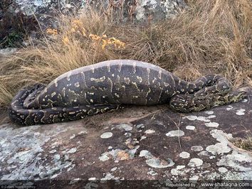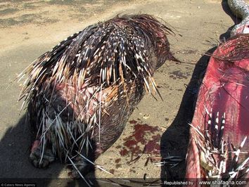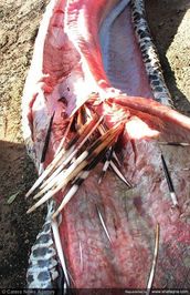 یک مار پیتون که یک جوجه تیغی بزرگ را بلعیده بود به سرانجامی تلخ مبتلا شد و هم خودش و هم جوجه تیغی کشته شدند. جوجه تیغی در درون شکم مار تیغهایش را باز و در شکم مار فرو کرد. نتیجه، خونریزی داخلی مار و کشته شدن مار بود. مأموران حیات وحش که با جثه عظیم و باد کرده مار پیتون مواجه شده بودند با باز کردن شکم مار، تیغهای جوجه تیغی را در جدار شکم مار یافتند و در این حال جثه مرده جوحه تیغی را نیز از درون شکم مار درآوردند.