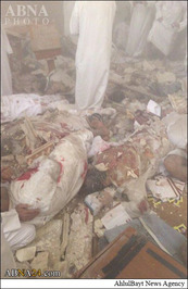 براساس گزارش شبکه المیادین عامل این انفجار تروریستی یک عامل انتحاری بود که خودش را در رکعت آخر نماز در میان نمازگزاران منفجر کرد.