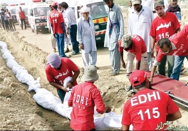 صراط: همزمان با گرمای شدید در شهر کراچی و افزایش شمار قربانیان، بیمارستانهای شهر کراچی مجبور شدند تعداد زیادی از اموات را به صورت دسته جمعی دفن کنند.