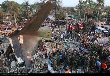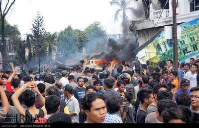 تصاویر/ سقوط هواپیمای نظامی اندونزی