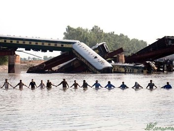 صراط: قطار ویژه ارتش پاکستان حامل کارکنان و وسایل نظامی ارتش این کشور در حالی با حادثه روبرو شد که یک پل هوایی روی دریاچه در مسیر «کهاریان» در منطقه گوجرانواله زمان عبور این قطار فروریخت.