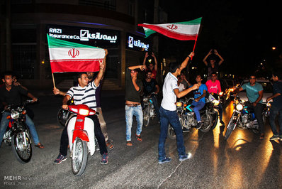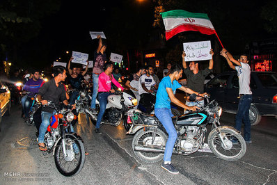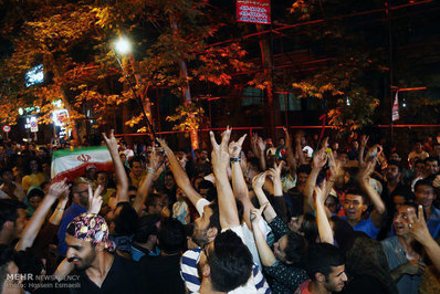 مردم تهران پس از توافق هسته ای ایران و 1+5 با حضور در سطح شهر به جشن و سرور پرداختند.