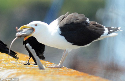 تصاویر بلعیده شدن این موش سریعا بعد از انتشار عکس هایی از مرغ دریایی که در حال خوردن پرنده ای دیگربود ،منتشر شد. در آن خبر تصاویر مرغ دریایی را در حال بلعیدن پرنده ای در مقابل چشمان جوجه هایش در گلاسو،شهری در اسکاتلند نشان می داد. براساس ای گزارش، تمام مرغان دریایی از ماهی ها،سخت پوستان و موجودات کوچک روی آب تغذیه می کنند اما برخی از آنها هرچیزی که در اندازه های مناسب باشد، می خورند و شاید این مرغ دریایی نیز شکار خود که یک موش است اطلاعی ندارد.