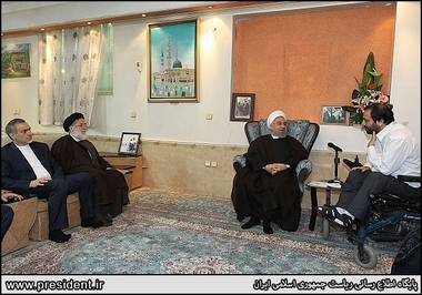 تصاویر/ دیدار روحانی با جانباز 70 درصد