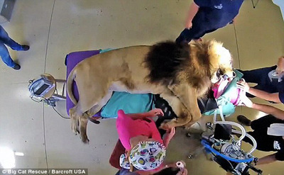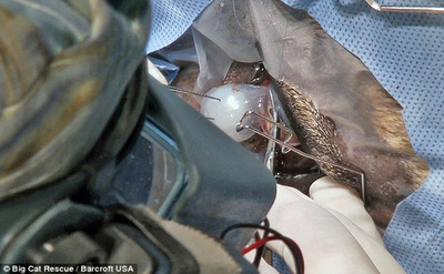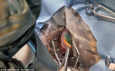 تیم جراحی دامپزشکان در فلوریدا در یک عمل جراحی موفقیت آمیز توانستند با قرار دادن یک لنز درون چشم شیر 17 ساله او را درمان کنند.