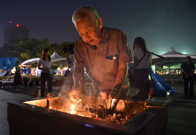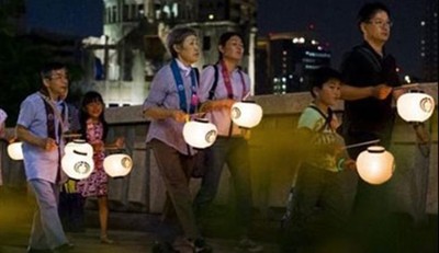 اهالی شهر "هیروشیمای" ژاپن در مراسم هفتادمین سالگرد بمباران اتمی شهرشان توسط آمریکا، شرکت کردند.  نخست وزیر ژاپن در این مراسم در "پارک یادبود هیروشیما" شرکت کرد و مردم هزاران فانوس را در رود "موتویاسو" این شهر به آب انداختند. یک فروند هواپیمای بی – 29 آمریکایی روز ششم اوت 1945 یک بمب اتمی بر روی شهر هیروشیما انداخت که به کشته شدن 140 هزار ژاپنی انجامید .ناقوس کلیساهای شهر در ساعت 8 و پانزده دقیقه صبح که زمان بمباران است ، به صدا در آمد.آبه در این مراسم که چهل هزار ژاپنی در آن شرکت داشتند نابودی سلاح اتمی در دنیا را خواستار شد .