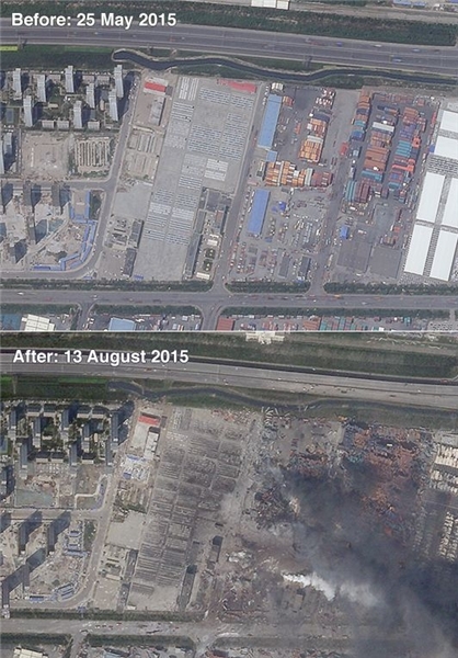 عکس/ محل انفجار تیانجین قبلوبعداز انفجار
