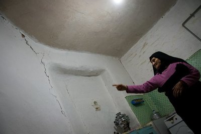 با لحظه ای خنده اما از روی اجبار می گوید: تا آمدیم فرار کنیم تمام شد اما وقتی هوا روشن شد و شکاف ها را در دیوارها دیدیم خنده بر لبانمان خشک شد.