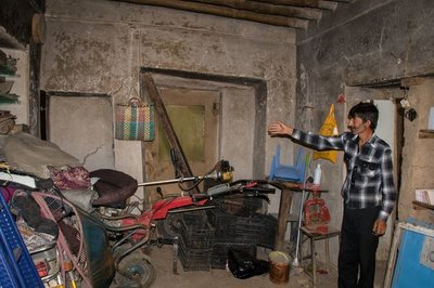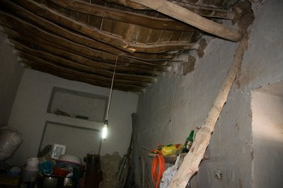 یوسفعلی زمانی با اشاره به سقف انبار خود، می گوید: قسمتی از سقف ریزش کرده است و برای اینکه کاملا تخریب نشود پایه ای چوبی در زیر آن قرار داده ام.