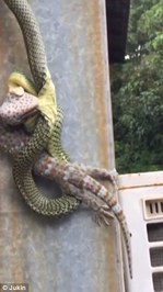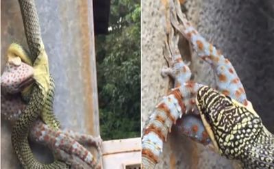 تصاویر/ نبرد دو ساعته مار و مارمولک