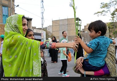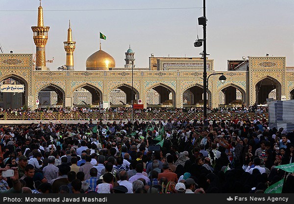 در سالروز میلاد با برکت حضرت علی ابن موسی الرضا(ع) چهارشنبه چهارم شهریور ماه هزاران نفر از زائران و مجاوران بارگاه ثامن الحجج با شاخه های گل و ذکر رضا رضا از میدان شهدای مشهد به سمت حرم رضوی حرکت کرده و حرم مطهر رضوی را گلباران کردند.