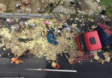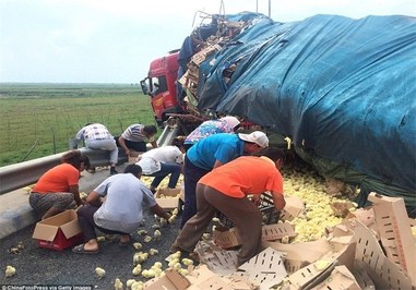 گفته می شود ارزش بار این کامیون، 50 هزار یوان (5 هزار پوند) بوده است.
