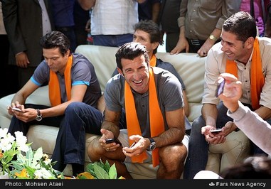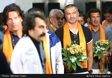 تیم فوتبال ستارگان جهان بامداد ششم مردادماه از فرودگاه امام خمینی (ره) وارد تهران شد. لوئیس فیگو، ادگار داویدس، فرناندو هیه‌رو، بودو ایلگنر، فرناندو کوتو، مارسل دسایی، کریستین کارمبئو، فابیو کاناوارو، گایزکا مندیتا، ویتور بایا، پدرو پائولتا، دوایت یورک، لینمانن، سانتیاگو سولاری از جمله بازیکنانی است که برای بازی انسان دوستانه جمعه به ایران آمده اند.