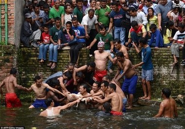 با وجود انتقادهای گسترده گروههای مدافع حقوق حیوانات، فستیوال سنتی «دئوپخاری» امسال نیز مانند سالهای گذشته در روستای «خوکانا» در مرکز نپال برگزار شد.در این فستیوال وحشیانه که بیش از 900 سال قدمت دارد، مردم روستایی با حمله به یک بز بیچاره، دست و پای این حیوان را از جهات مختلف میکشند تا کشته شود. مردم روستا معتقدند با این کار، حیوانات را قربانی میکنند تا از کودکان آن ها محافظت شود. تصاویر نشان میدهد که در اطراف برگزاری مراسم، کودکان خردسالی هستند که زجرکش شدن حیوانات را نظاره میکنند.