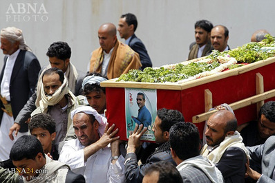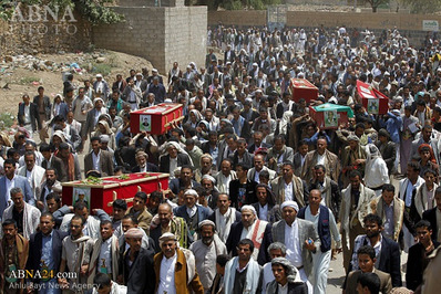 مردم مظلوم یمن پیکر مطهر ۳۲ تن از نمازگزاران مسجد مؤید که در دو انفجار تروریستی به شهادت رسیدند تشییع و به خاک سپردند. بر اثر انفجار انتحاری در مسجد مؤید وابسته به جنبش انصارالله در پایتخت یمن و انفجار خودروی بمبگذاری شده در مقابل این مسجد ۳۲ نمازگزار به شهادت رسیده و ۹۸ نفر نیز زخمی شدند. گروه تروریستی داعش مسئولیت این جنایتها را بر عهده گرفته است.