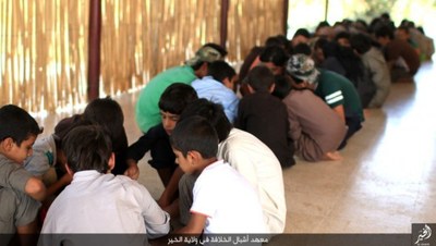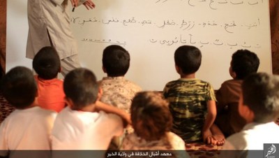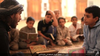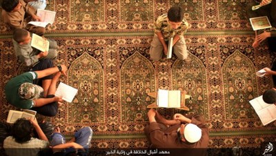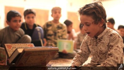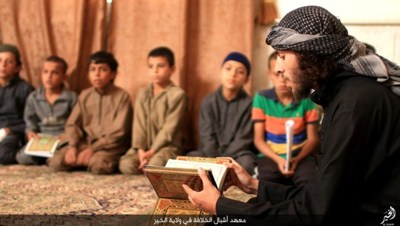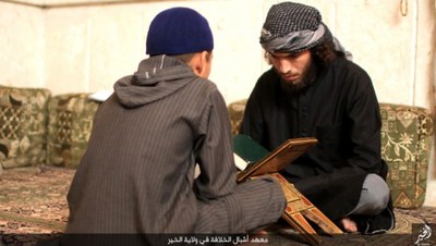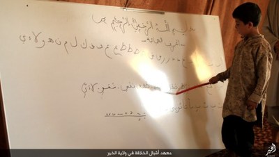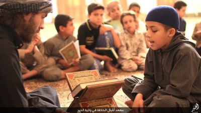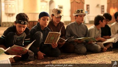 گروهک تروریستی داعش در این تصاویر نحوه تعلیم قرآن و آموزش نوشتن را به نمایش گذاشته است.این گروهک که پیش از این بر آموزش نظامی کودکان تأکید داشت، این بار دوره آموزش عقیدتی، فرهنگی و ورزشی کودکان را در برنامه خود قرار داده است.داعش از این کودکان برای انجام عملیاتهای انتحاری سوء استفاده میکند و برای پیشبرد اهداف شوم خود علاوه بر آموزشهای نظامی باید عقاید انحرافی خود را نیز به این کودکان تلقین کند.گفتنی است بیشتر این کودکان یا توسط عناصر داعش ربوده شده و یا خانواده آنان به دلیل فقر، در ازای دریافت پول آنان را به این پادگان فرستادهاند؛ داعش امیدوار است با آموزش نسل جدیدی از تروریستها، بقای خود را تضمین کند؛ اما به همت ارتش و نیروهای مردمی عراقی و سوری عمر این گروهک تروریستی در حال پایان است.