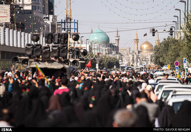 حرکت پیاده زائران به سمت حرم رضوی در روز زیارتی امام رضا (ع)