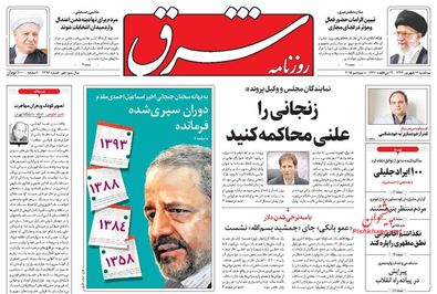 صفحه اول روزنامههای سه شنبه ۱۷ شهريور ۱۳۹۴
