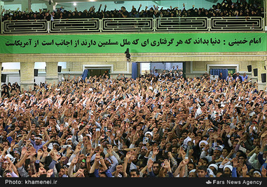 رهبر معظم انقلاب اسلامی در این دیدار با هشدار درباره تلاش های فریب کارانه آمریکا برای نفوذ از برخی روزنه ها، «اقتصاد قوی و مقاوم»، «توسعه روزافزون علم» و «حفظ و تقویت روحیه انقلابی گری بخصوص در جوانان» را سه عامل مقابله مقتدرانه با دشمنی های پایان ناپذیر شیطان بزرگ اعلام کردند و با بیان برخی نکات درباره انتخابات اسفند 94، افزودند: نتیجه هر انتخابات نیز مانند تک تک آرای مردم، حق الناس است و با همه وجود، از این حق ملت، دفاع خواهد شد.