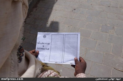 گروهک تروریستی داعش، بروشورها، نشریات و کتابچههایی را با نام "این عقیده ماست و این راه ما" با هدف جذب نیرو در این شهر توزیع کرد.