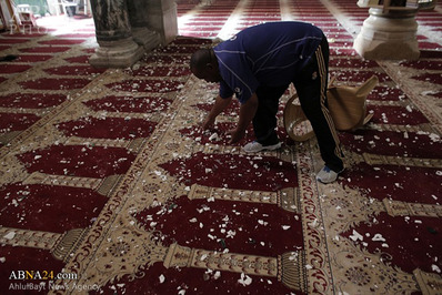 پنجرههای مسجد که شیشههایش را شکسته بودند، به سمت نمازگزاران مسلمان در