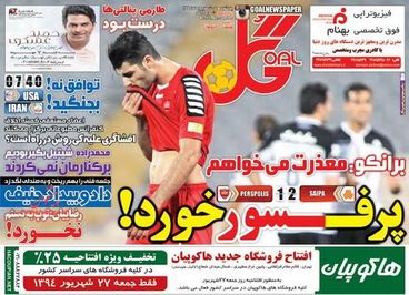صفحه اول روزنامههای ورزشی پنجشنبه ۲۶شهريور 1394