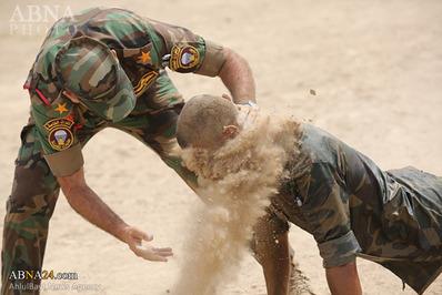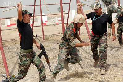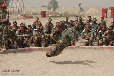 صدها دانشجوی افسری نیروی نظامی عراق در یک مدرسه نظامی در بغداد به منظور مقابله با عناصر تروریستی داعش سختترین آموزشهای نظامی را سپری میکنند.