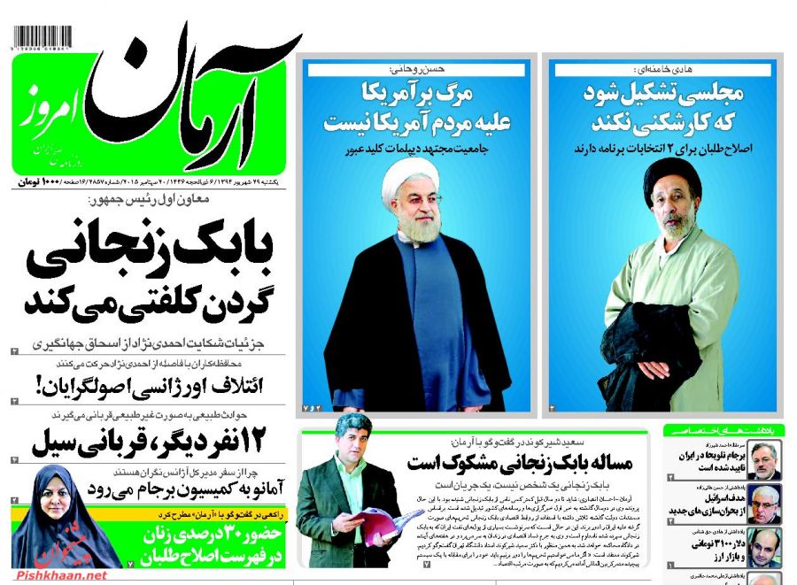 صفحه اول روزنامه های يکشنبه ۲۹ شهريور ۱۳۹۴